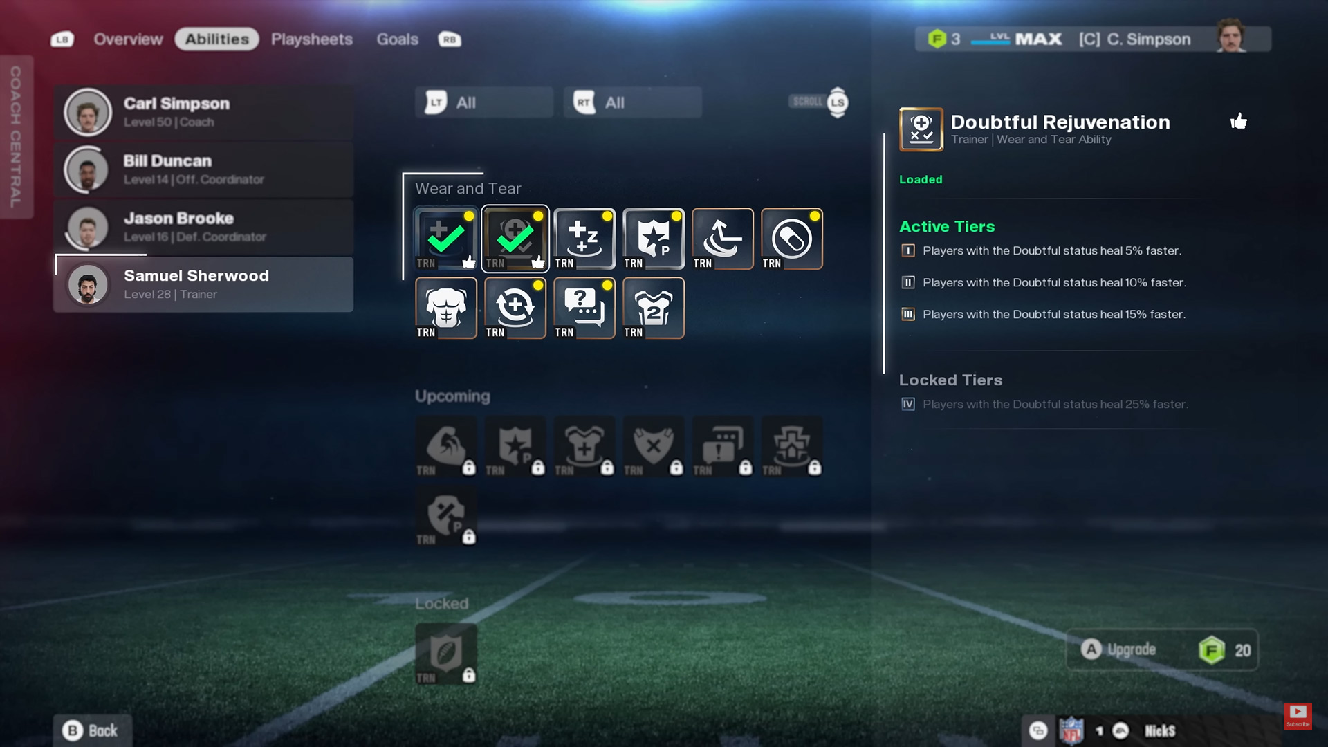 You can activate specific trainer abilities week to week depending on your team's condition. Got a short turnaround after a Monday night game? Make your loadout reflect it.